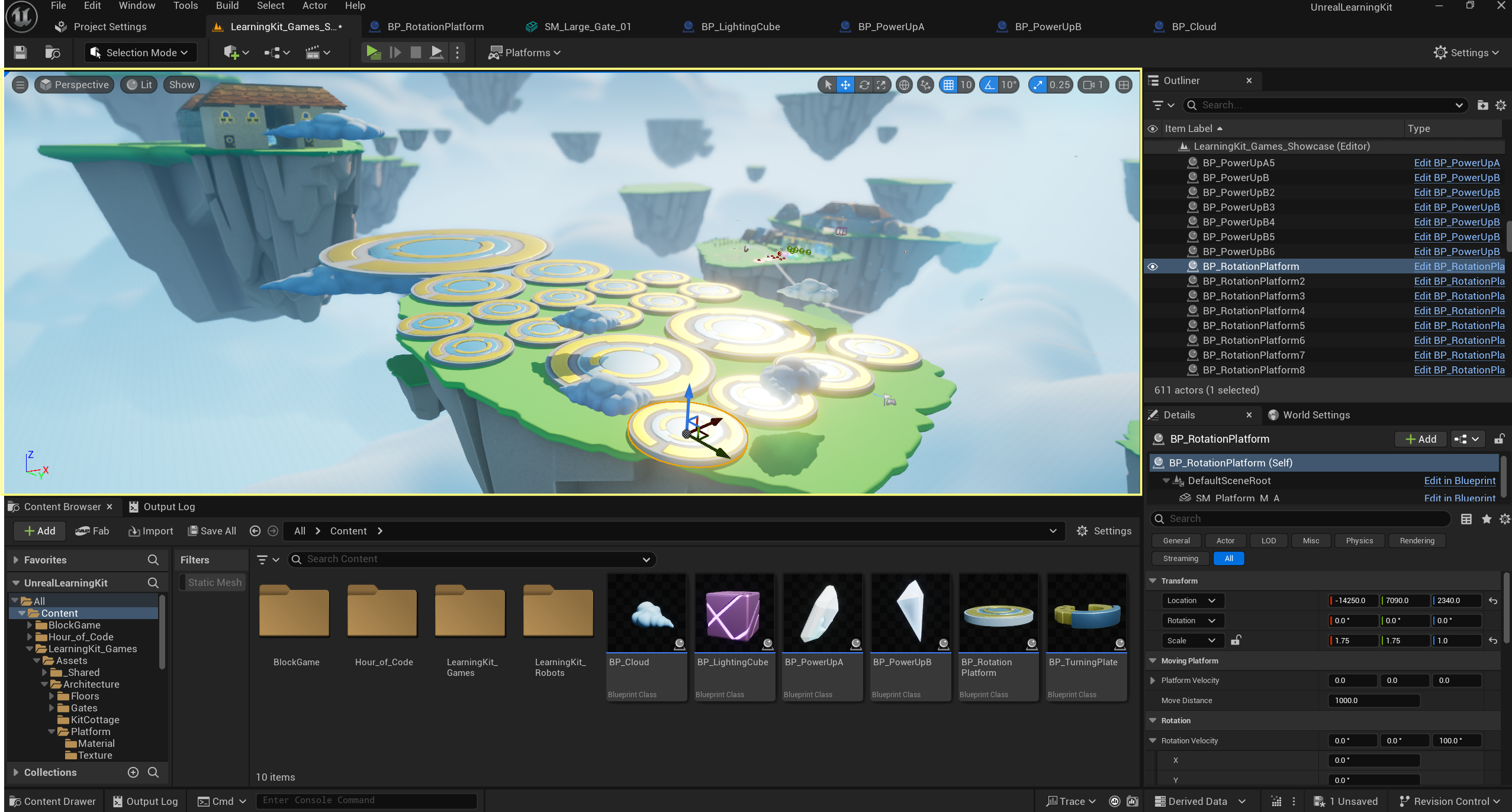 - Details panel 에서는 선택한 오브젝트의 속성을 보여주고 편집할 수 있게 한다. 예를 들어 위치, 회전, 크기, 머터리얼, 콜리전, 애니메이션 등